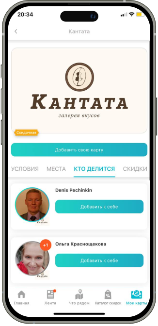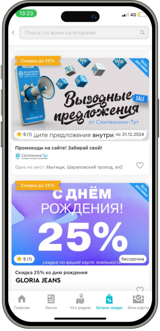 Листайте каталог и выбирайте интересующие вас места, товары и услуги — получайте быстрый доступ к предложениям через личный кабинет.