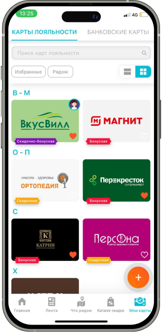 Загружайте карты лояльности магазинов, ресторанов, салонов красоты, АЗС и др.